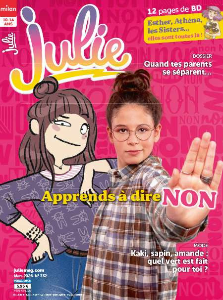 Julie est le magazine utile et précieux pour les lectrices âgées de 10 à 14 ans, engagé pour les filles. Il propose des sujets pour les aider à accepter les changements de leur corps grâce à l'héroïne Juju et à sa famille, et des rubriques pour les aider à mieux se connaître. Le magazine Julie aidera aussi votre fille à gérer ses relations amicales et à affirmer sa personnalité.