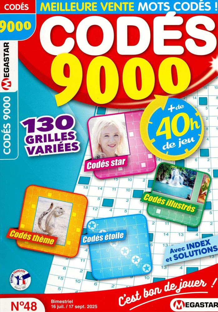 De la nouveauté dans le domaine des codés... Codés 9000, première revue de mots codés en couleur, vous propose, en plus de ses grilles classiques, 5 variantes à découvrir sans tarder ! Codés illustrés, codés à thème, codés étoile, codés mini et codés sta... de quoi jouer pendant deux mois. N'hésitez pas, pour déconnecter rien de tel que décoder !