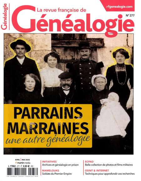 La Revue Française de Généalogie vient en aide à des milliers de généalogistes en publiant régulièrement des articles de grandes qualité. Elle permet aussi aux passionnés de communiquer entre eux, et de résoudre la plupart de leurs problèmes. Au fil des numéros Jean Louis Baucarnot vous invite à suivre son feuilleton généalogique, portant sur des sources à exploiter pour vous aider dans vos recherches. C'est aussi un dossier complet, pratique et objectif, pour un débat constructif, à travers le nom dans l'histoire, dans le droit, dans la société, la transmission du nom chez nos voisins, etc...